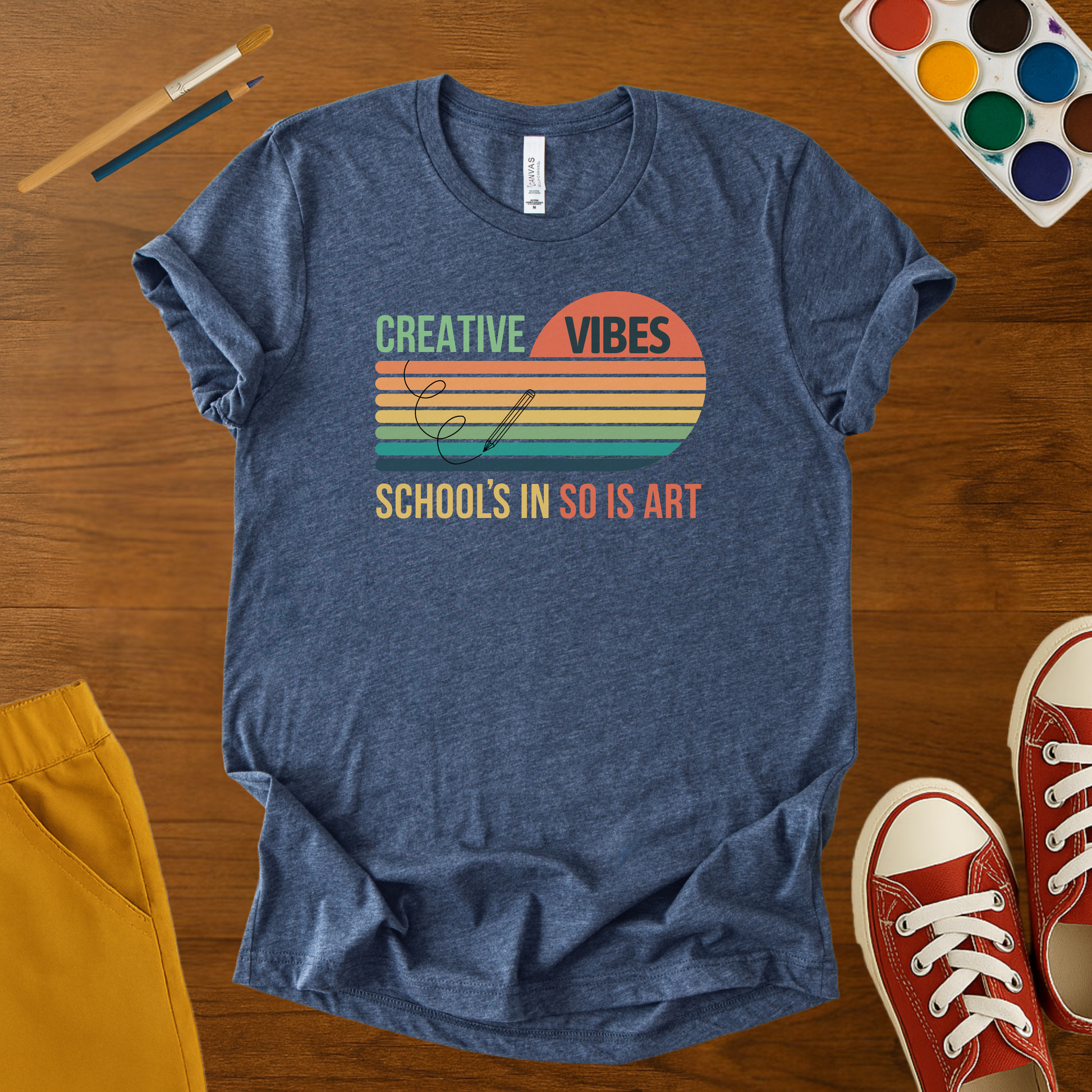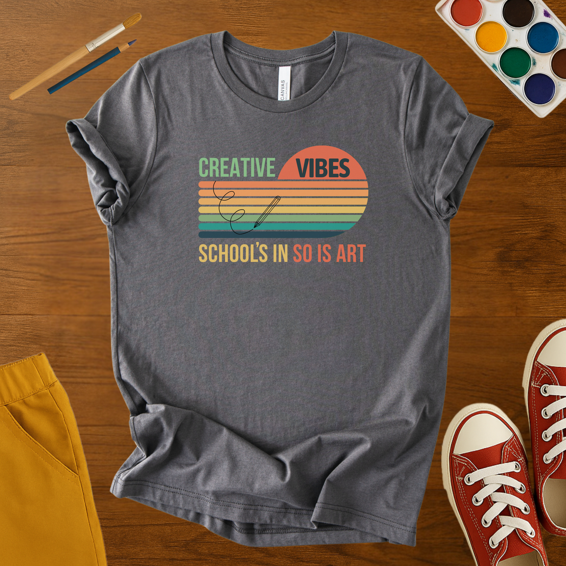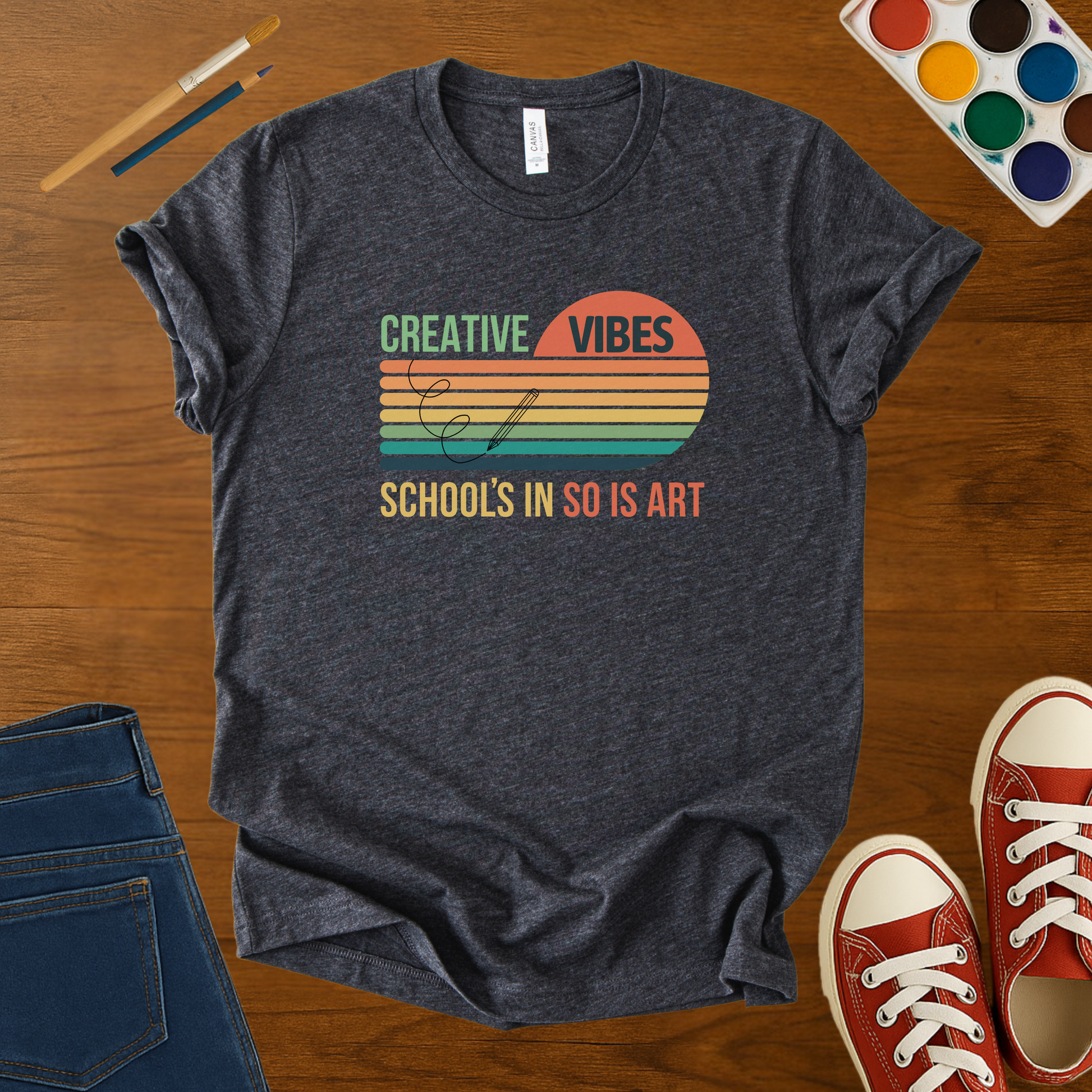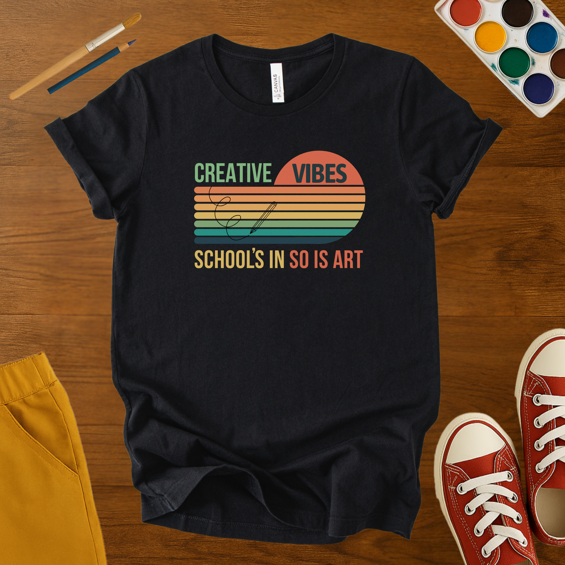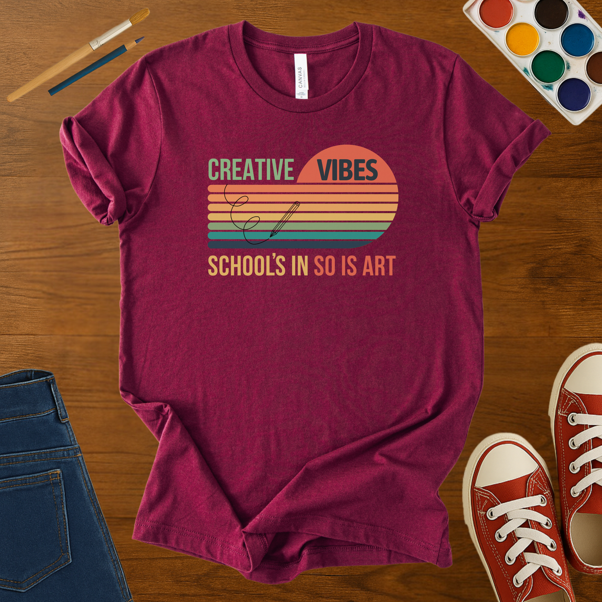 This Creative Vibes t-shirt brings retro style and artsy energy to the classroom.
