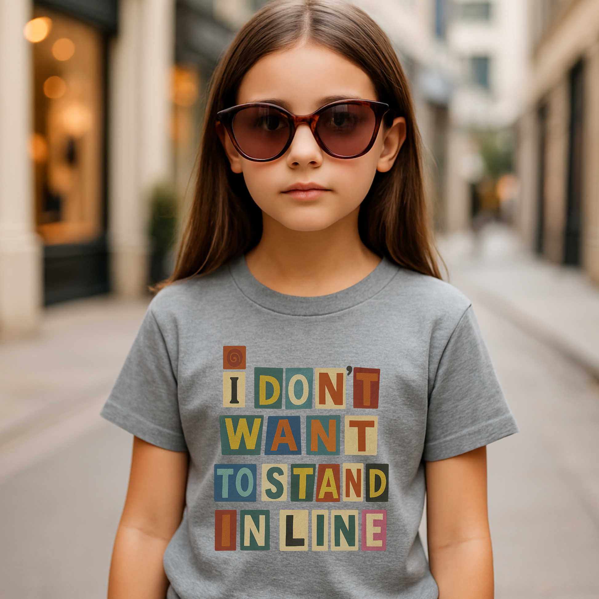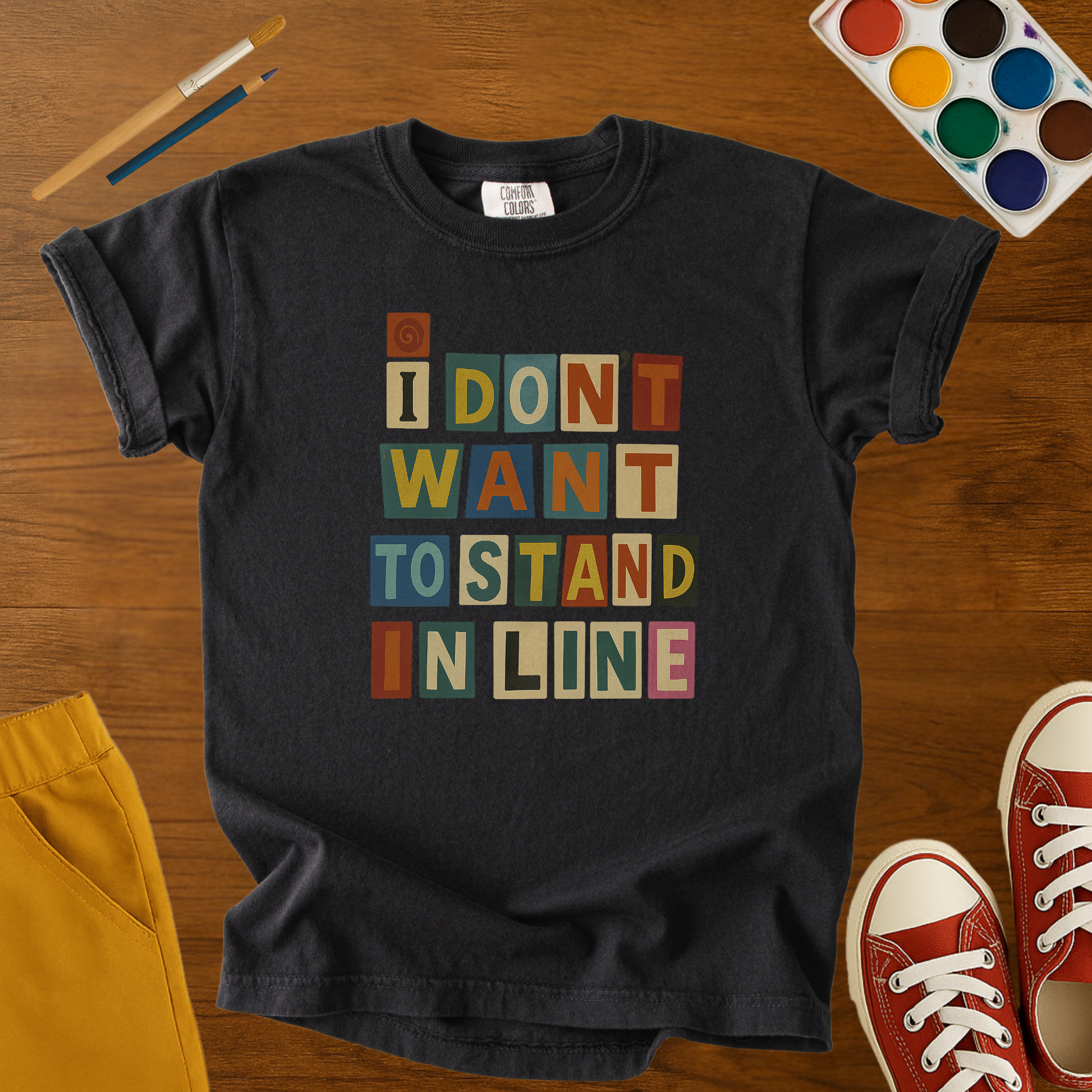 I Don’t Want to Stand in Line, Bold Statement Kids Graphic Tee